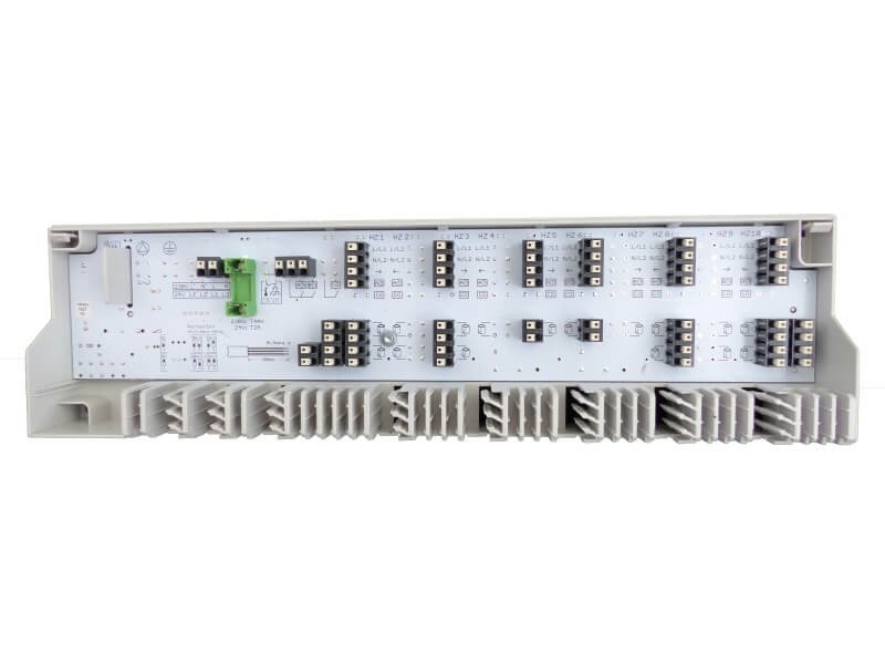 - Für bis zu 15 Stellantriebe und 6 Zonen/Regler