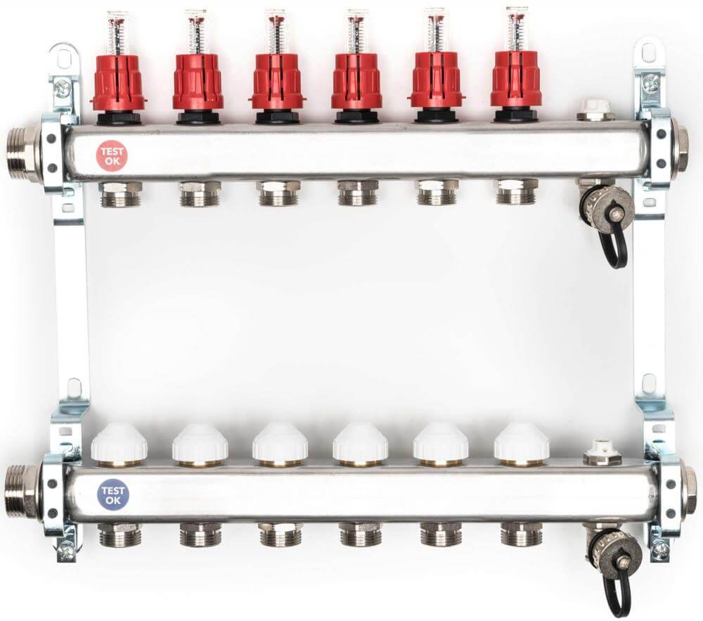 - 1 x Heizkreisverteiler aus Edelstahl für 6 Heizkreise