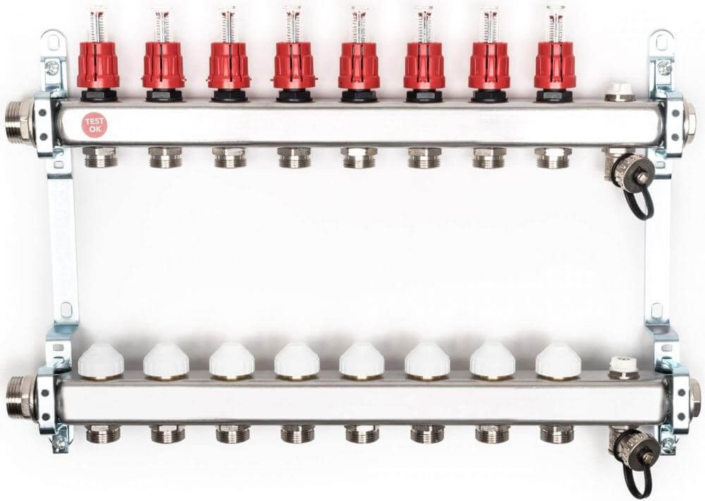 - 1 x Heizkreisverteiler aus Edelstahl für 8 Heizkreise