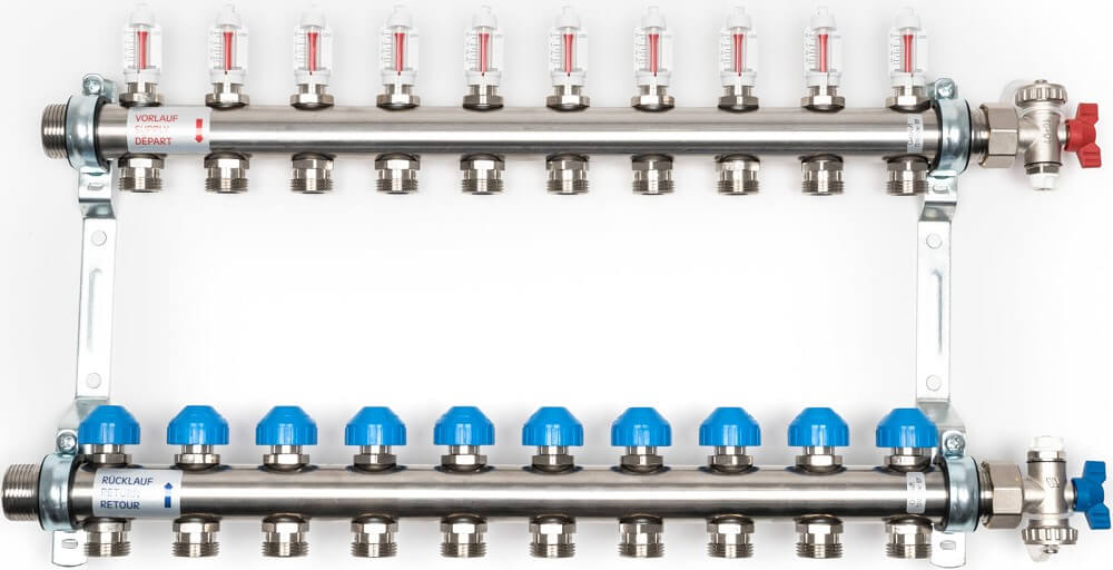 - 1 x Dynamischer Heizkreisverteiler «Premium» aus Edelstahl, 10 Heizkreise _x000D_