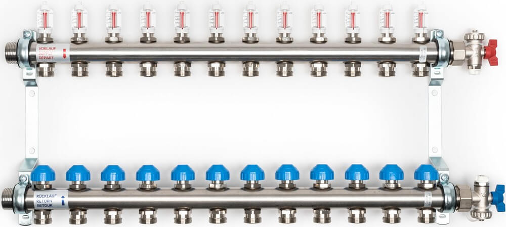 - 1 x Dynamischer Heizkreisverteiler «Premium» aus Edelstahl, 12 Heizkreise _x000D_