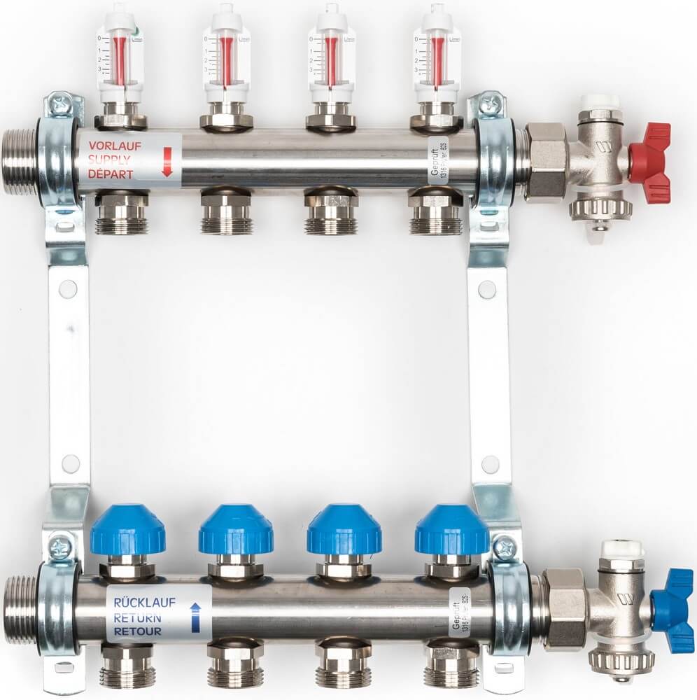 - 1 x Dynamischer Heizkreisverteiler «Premium» aus Edelstahl, 4 Heizkreise _x000D_