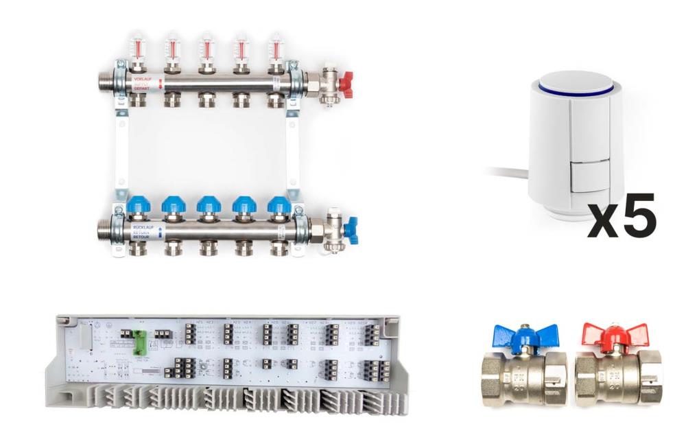 - 1 x Dynamischer Heizkreisverteiler «Premium» aus Edelstahl, 5 Heizkreise