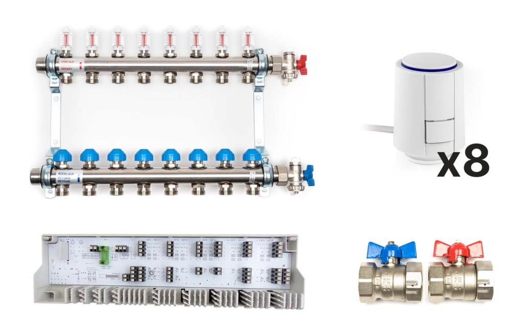 - 1 x Dynamischer Heizkreisverteiler «Premium» aus Edelstahl, 8 Heizkreise