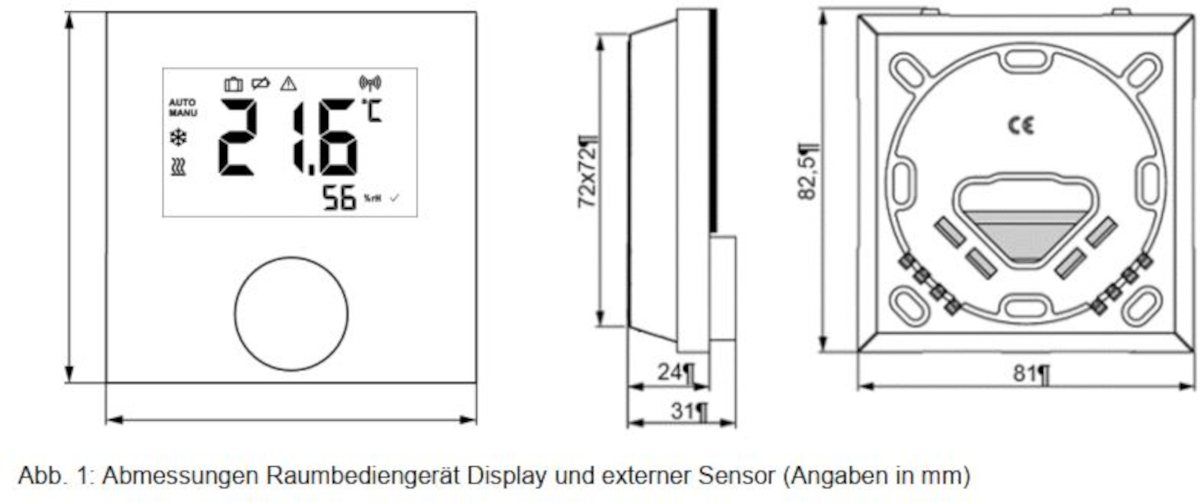 - Auflösung Solltemperaturvorgabe: 0,2 K