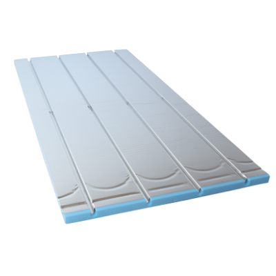 Die XPS 500 Trockenbauplatte bildet das Herzstück eines effizienten Flächenheizsystems mit nur 25 mm Aufbauhöhe und weniger als 1 kg Gewicht pro Platte. Dies ist ideal für Renovierungen mit begrenztem Platz. Die Aluminiumfolie auf der Platte sorgt für optimale Wärmeverteilung, während die vorgefräste 16-mm-Rillen für eine einfache Verlegung der Heizrohre in 15-cm-Abstand ermöglichen. Der Zuschnitt erfolgt mühelos mit einem Teppichmesser. Die hohe Druckfestigkeit von 35 t/m² ermöglicht die Verlegung unterschiedlichster Bodenbeläge, inklusive Fliesen, Holz, Vinyl oder Teppich (mit Druckausgleichsplatte). Auch in Feuchträumen wie Badezimmern ist die Nutzung problemlos möglich.